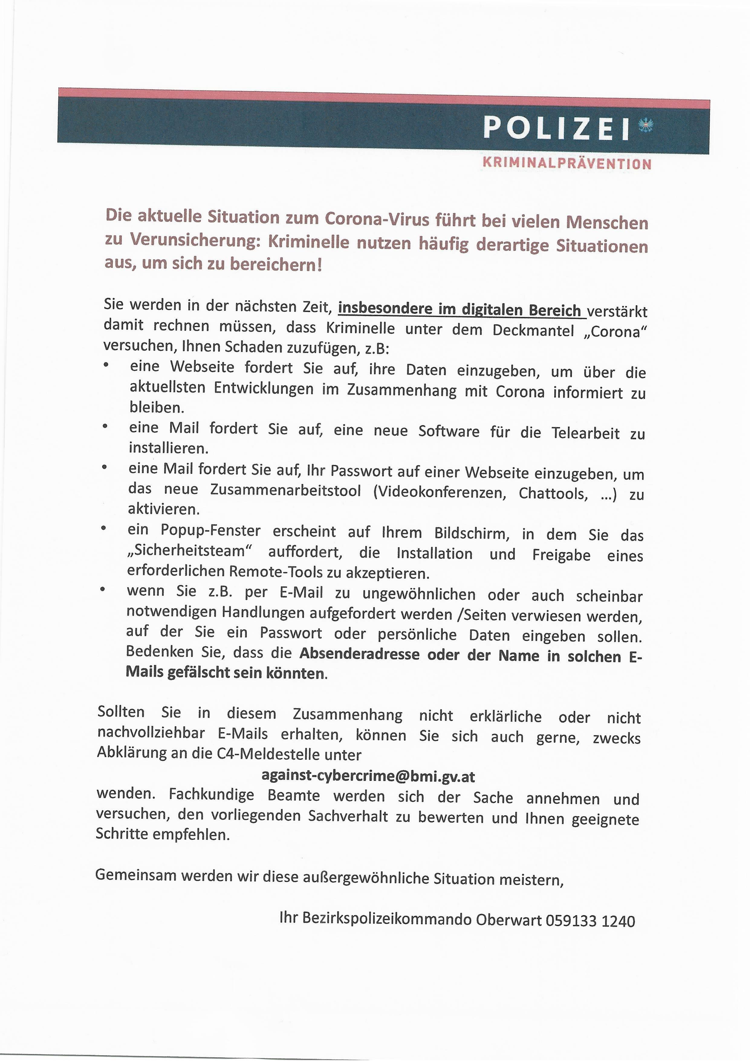 Corona-Cyber-Crime Kriminalpolizeil. Aussend. März 2020