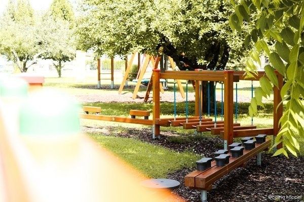 Im Ortszentrum, eingerahmt von den beiden Kirchen, dem Gemeindezentrum und dem Dorfbrunnen liegt der zentrale Treffpunkt von Alt und Jung.