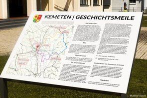 Neben dieser "Skulptur" wurde eine Orientierungskarte mit Kemeten und seiner Hottergrenze aufgestellt. Auf dieser Karte ist die Geschichtsmeile mit ihren Stationen eingezeichnet. Diese einzelne Stationen sind bereits real ersichtlich/begehbar, es ist aber geplant, im Laufe der nächsten Monate/Jahre separate Projekte zu den einzelnen Stationen zu erstellen.